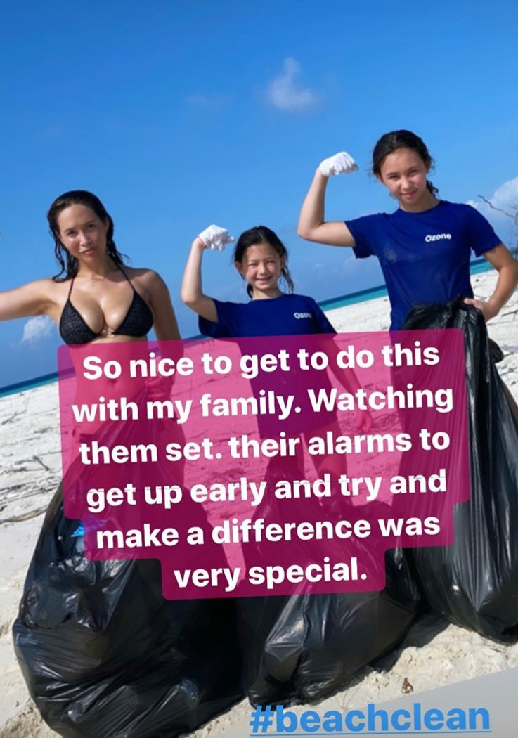A video of her family cleaning the beach was also posted on her Instagram account.