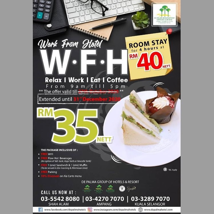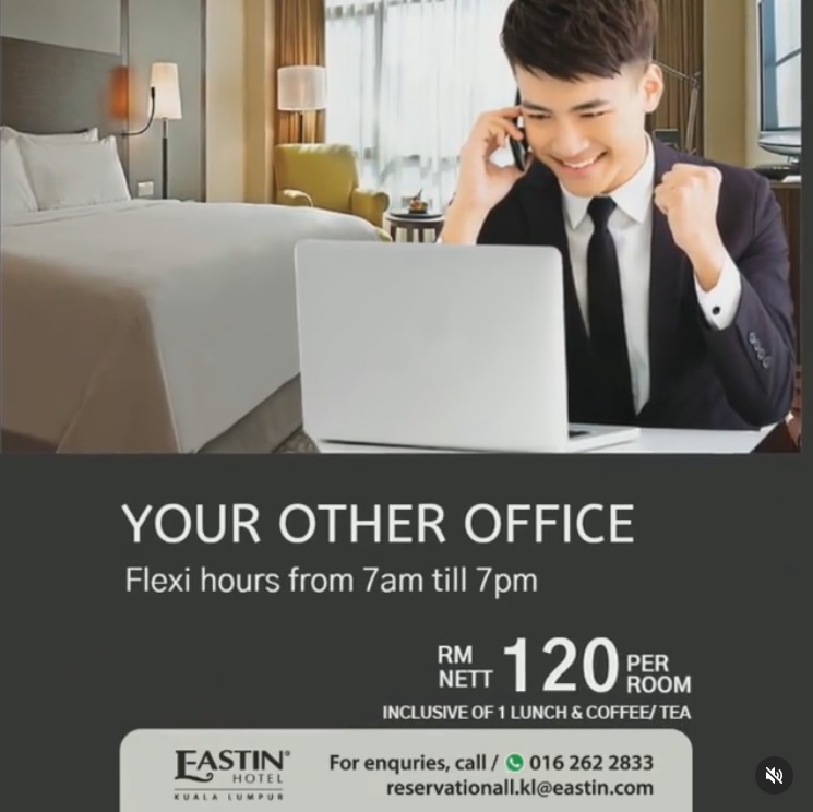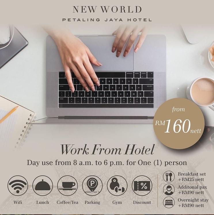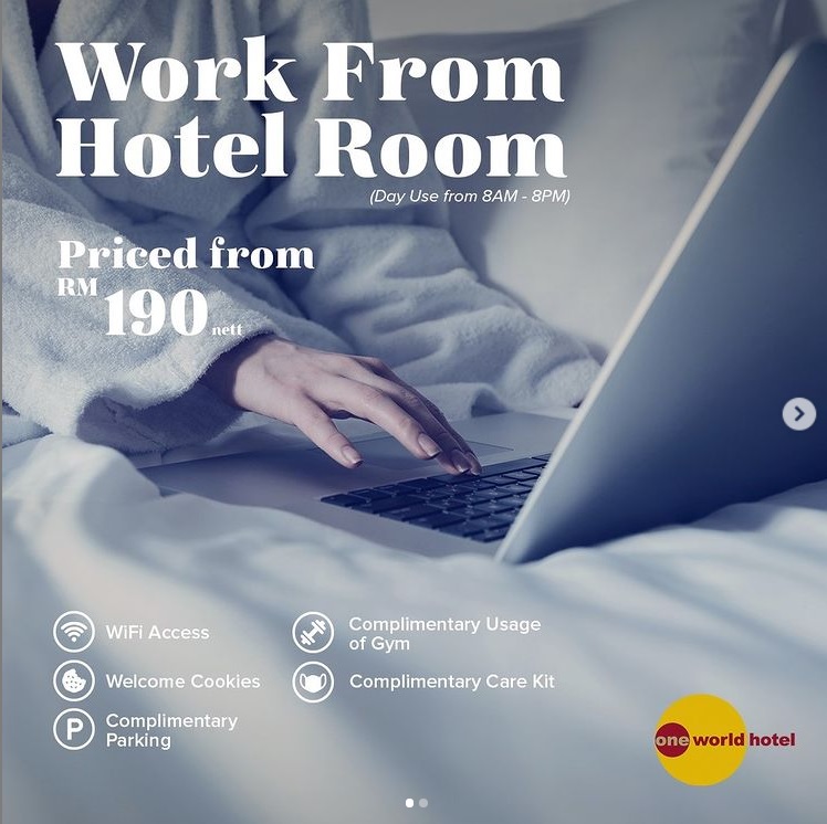 Hendak ke pejabat, pejabat mungkin belum dibuka. Don’t worry! Kita WORK FROM HOTEL. Boleh bekerja dengan stail!