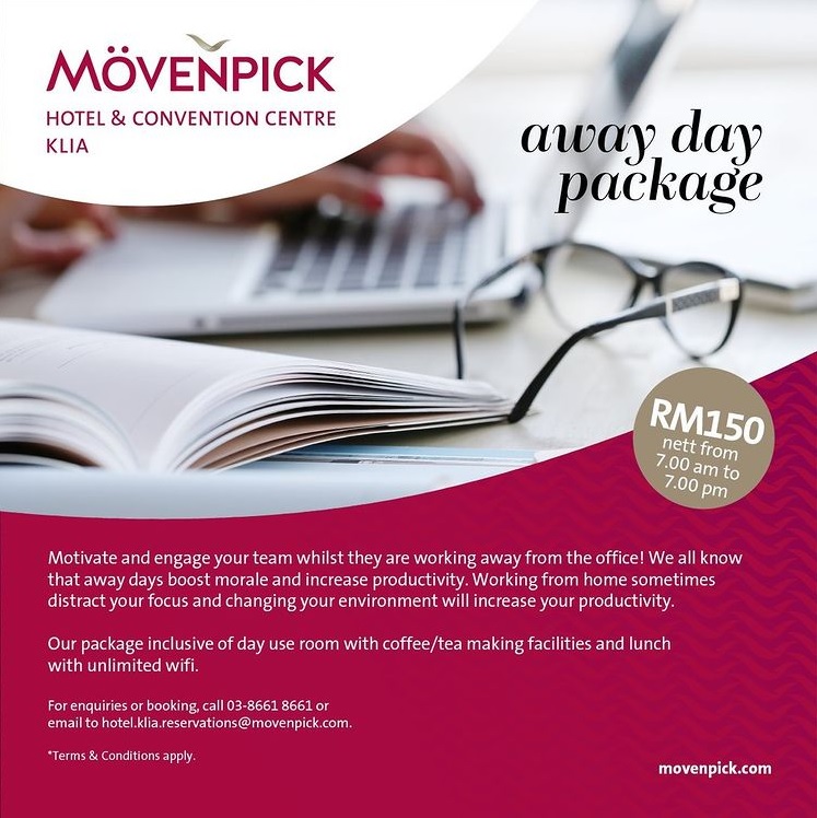 Harga bermula dari RM150. Untuk maklumat lanjut, layari https://www.facebook.com/movenpickhotelklia/posts/3547130218666853