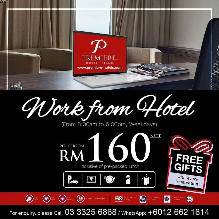 Dengan pelbagai pakej work fromhotel yang ditawarkan oleh hotel-hotel di Selangor, inilah masanya untuk anda tingkatkan produktiviti and menyiapkan kerja anda dalam penuh keselesaan dan perhidmatan hospitaliti yang berkualiti.