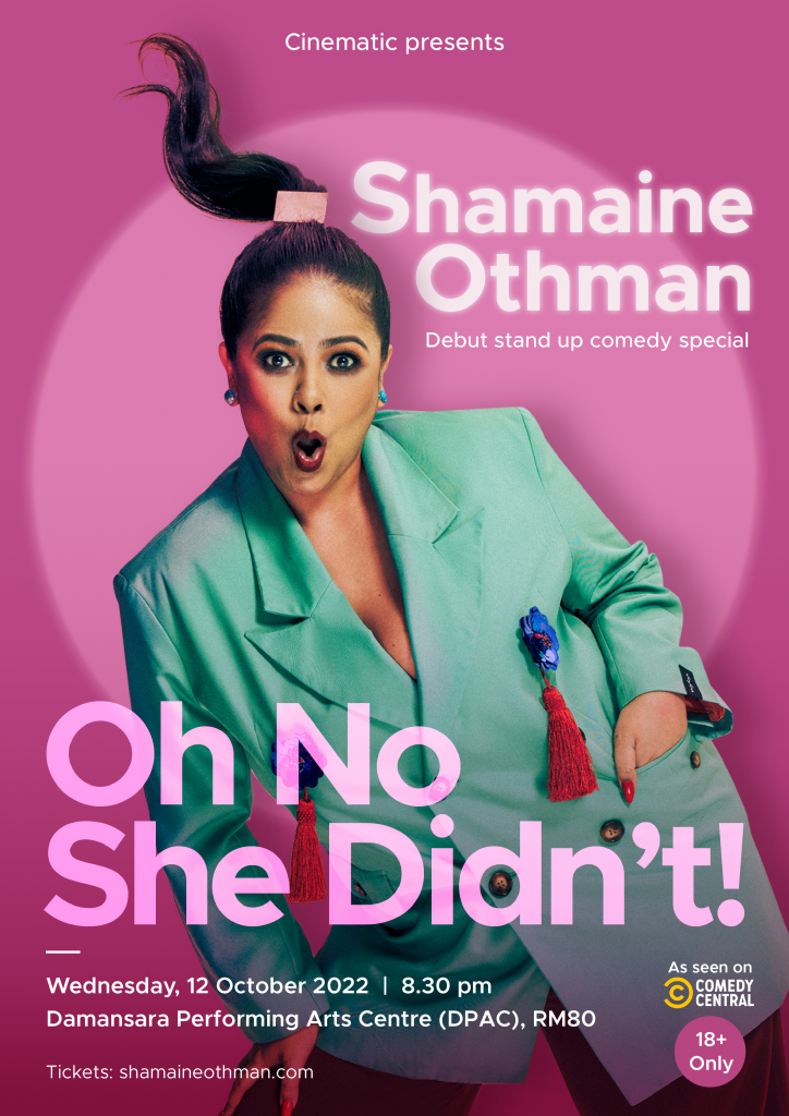 Penantian Shamaine Othman, karyawan Malaysia yang amat dikenali dengan bakatnya sebagai penulis, pelakon, pengarah, produser dan juga pelawak ‘stand-up’ bakal berakhir dengan pementasan ‘Oh No She Didn’t!’ pada Oktober ini. Dirancang sejak sebelum dunia dilanda pandemik, persembahan istimewa komedi ‘stand-up’ tersebut bakal melakar sejarah sebagai persembahan solo pertamanya sejak mula berjinak-jinak dengan dunia komedi sejak tahun 2012.