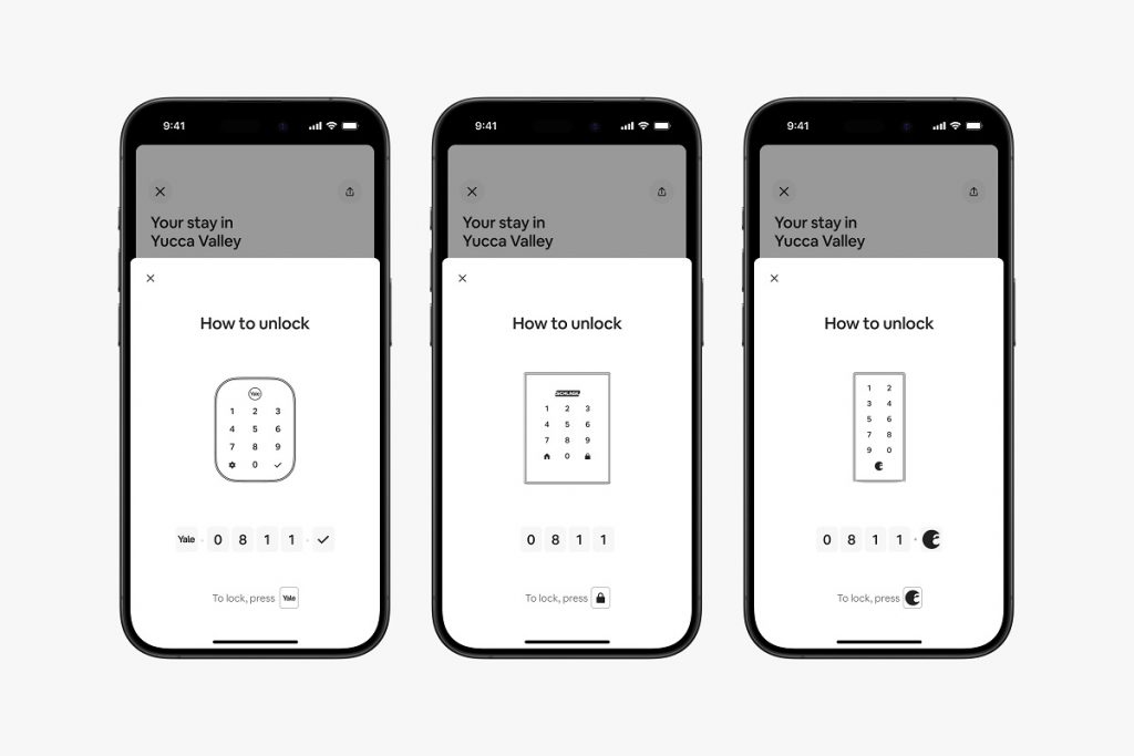 Tetamu boleh melihat kod masuk mereka di aplikasi Airbnb sebelum mereka tiba. Integrasi kunci pintar akan mula dilancarkan di AS dan Kanada lewat tahun ini dengan sokongan untuk kunci tertentu daripada Schlage, August dan Yale.