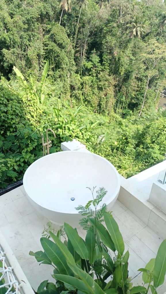 Where should I start? With the gorgeous view of each villa, you could just lounge lazing around on a net-like gazebo provided on the balcony of each villa or take a bath in a bathtub outside your villa, it’s your choice. The interior deco spells luxury all the way. Truth be told when you’re in your villa you will have a difficult time looking impassive or leaving your villa to enjoy Ubud. Because all you want to do is do nothing and enjoy the peace and the comforts of your villa.