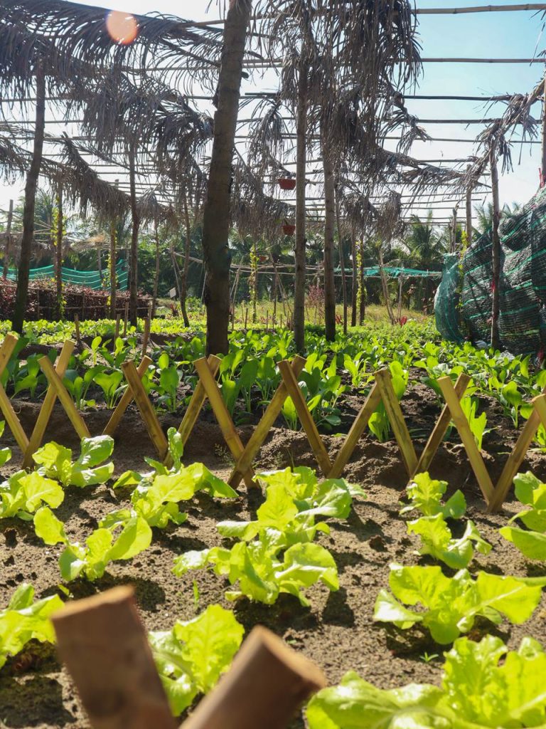 The budding farm’s variety of vegetables also include lettuce, cucumber, green onion, and cassava root. Custard apple, papaya, banana, mango, gac fruit and bitter melon are among the farm’s fruits. Herbs grown include basil, coriander, thyme, mint, imperata cylindrica, and plantago asiatica.