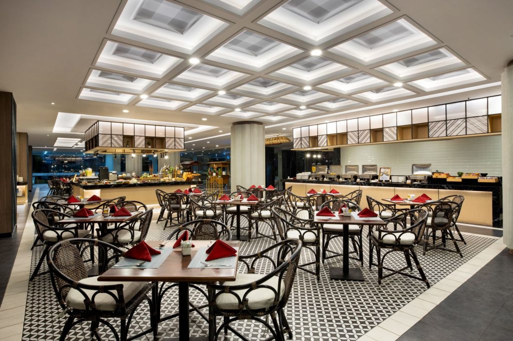 Guests can choose from a range of stylish rooms, including Deluxe, Grand Deluxe, and Executive Rooms, each thoughtfully designed to provide modern comforts and a serene retreat from the city’s hustle and bustle. The rooms are equipped with all the necessary amenities to ensure a comfortable and productive stay.