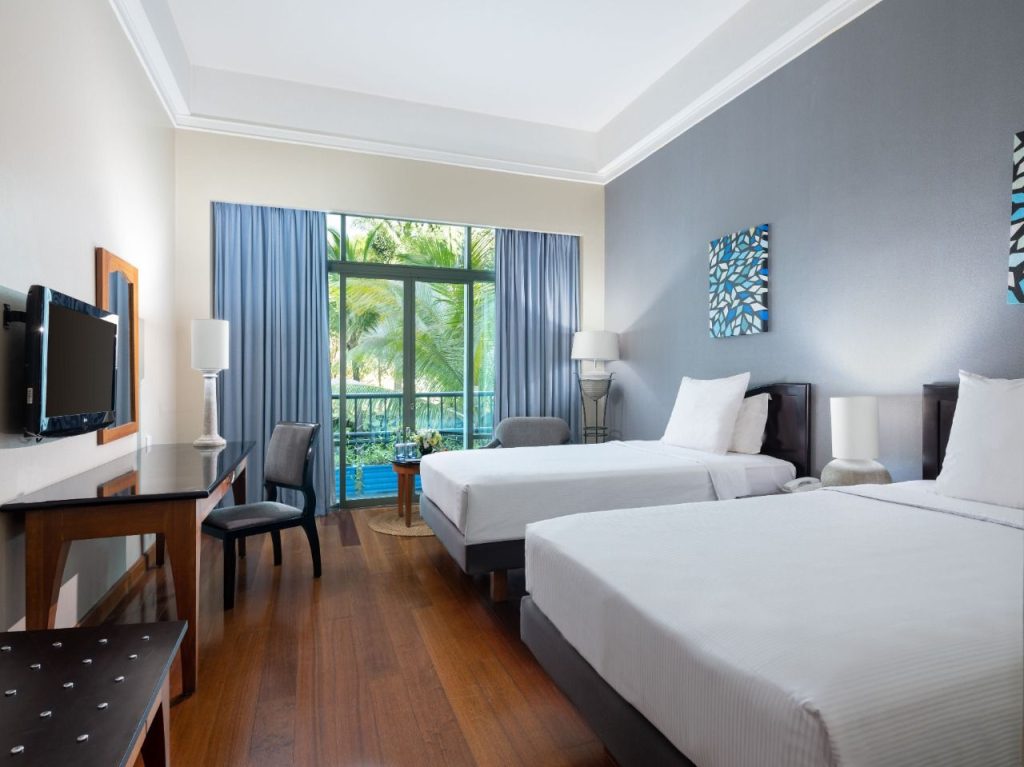 The hotel boasts a range of top-tier amenities designed to cater to both business and leisure needs. The business centre and six meeting rooms are perfect for corporate events, while the open-air garden can accommodate special occasions for up to 250 guests. Leisure facilities include a tropical-themed swimming pool, where guests can relax and rejuvenate, and a well-equipped fitness area.