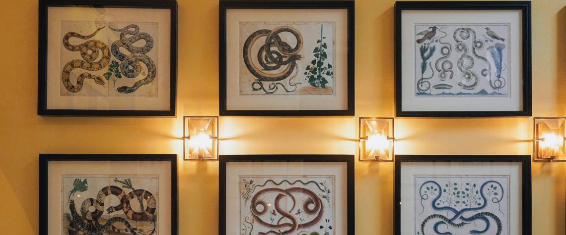 Bensley’s interior design through pen & ink stetches, descriptive images, artistic installations and even a series of QR codes that can be scanned to reveal further information about each zoological subject.