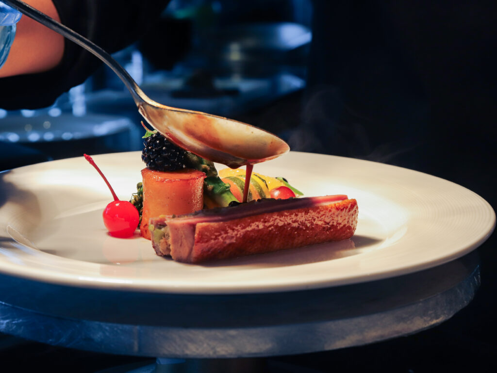 The Smoked Glazed Duck à la Pistachio highlights locally sourced Bidor duck from Perak, a town known for its quality poultry, presented in a refined modern style. The tender duck breast is paired with freshly glazed berries, adding a touch of natural sweetness that enhances the dish’s smoky and nutty notes.