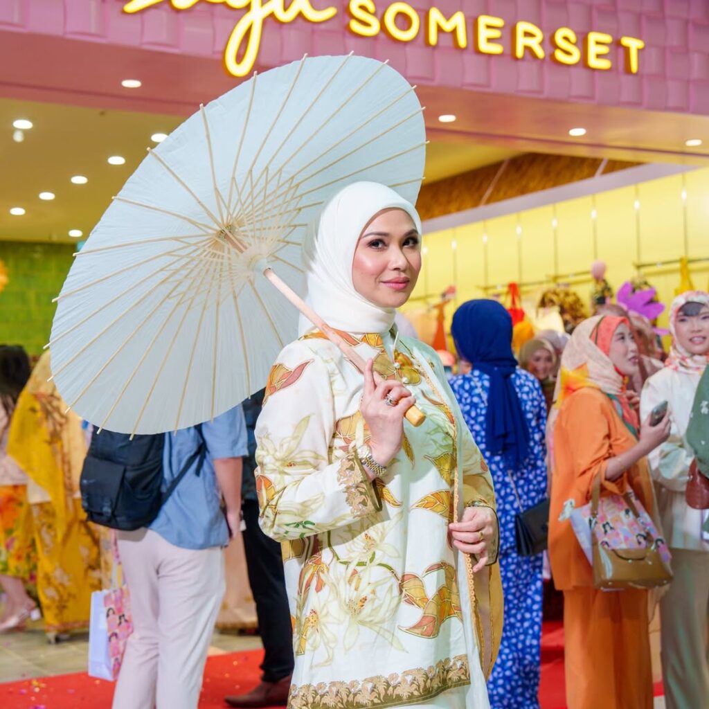 Kolaborasi bersama Arif Rafhan memperlihatkan reinterpretasi batik klasik dalam palet warna ceria dan berani, memberi nafas kontemporari kepada busana Raya tradisional.